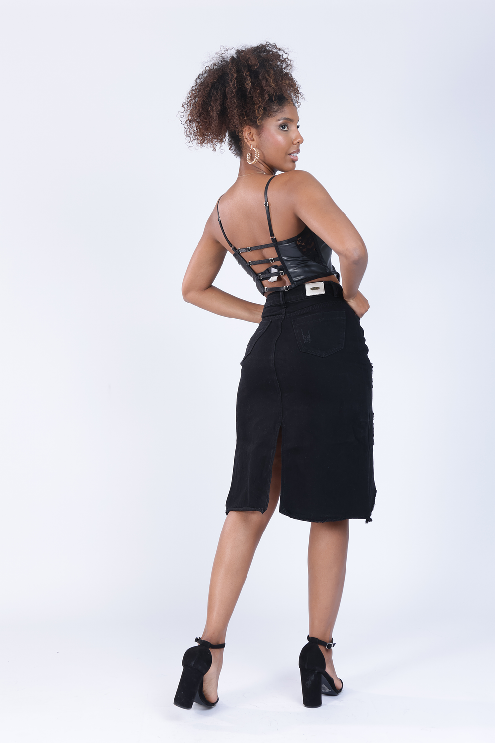 Introducing our Black Distressed Skirt, a must-have piece for those looking for a bold and personal look. This skirt combines classic style with modern details that will make you stand out.